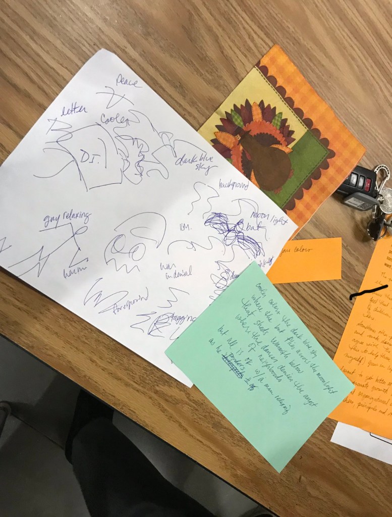 It’s hard, here, to know just what experiences, specifically, led to what happened, to what I’m writing about. They all did, I suppose. But I can’t recreate a trimester of experience in the context of a blog post. I have to shine light on certain moments and hope something emerges in the shadows and silhouettes.